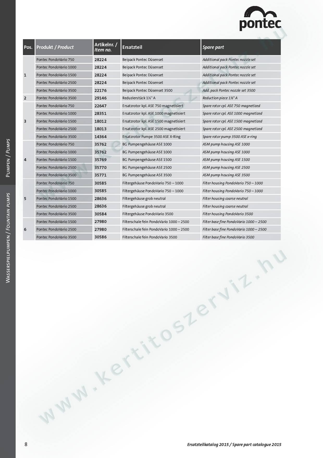 - Tószivattyúk, tószűrők, uv-c berendezések, világítások és egyéb termékek teljes körű szervizelése, javítása gyári alkatrészek felhasználásával.